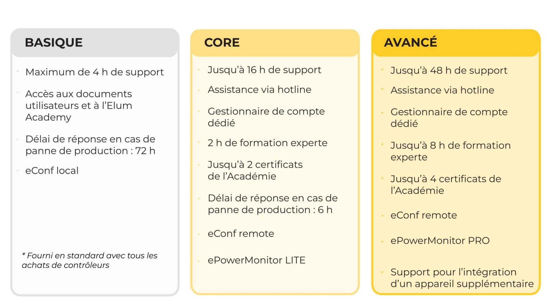 Nos plans d’assistance personnalisés vous offrent la combinaison idéale d’outils et d’expertise pour garantir un démarrage en douceur et un fonctionnement fiable à long terme. Vous pouvez choisir le plan qui correspond le mieux aux besoins de votre projet.