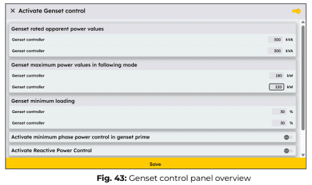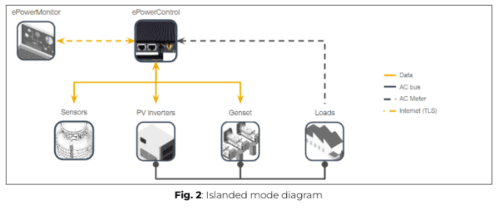 The ePowerControl is NOT an electrical protection. It does not replace an adequate protection of diesel generators against power reversal, nor a properly configured/installed protection relay, nor a properly configured/installed genset controller integrating the reverse current protection functionality. If necessary, please install protection relays against reverse power.