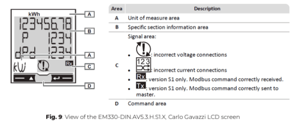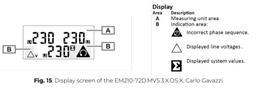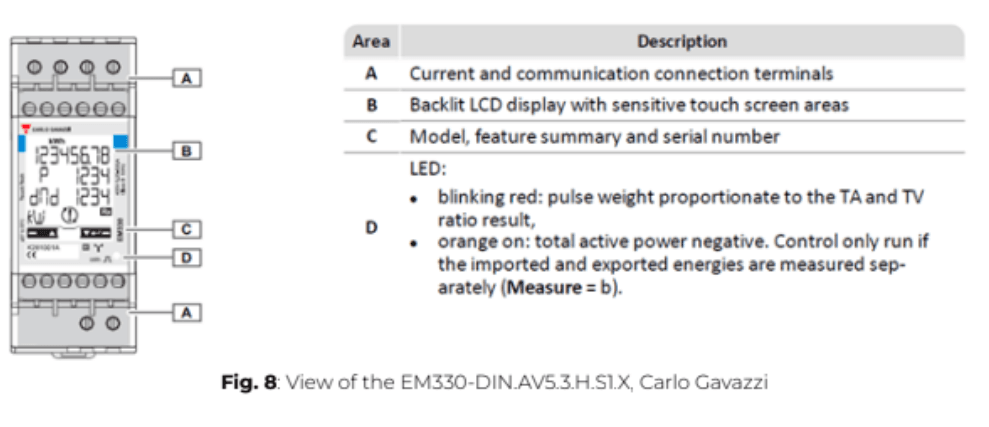 | Power meter values have wrong signs (positive instead of negative). | Negative power monitoring not enabled on grid meter | AC Meter | 5A provided by Elum When installing a EM330-DIN.AV5.3.H.S1.X, Carlo Gavazzi: MEASurE, Measurement type: To be set to “b” AC Meter | 333mV provided by Elum When installing a APPLiC, Measurement application: To be set to “E”. |