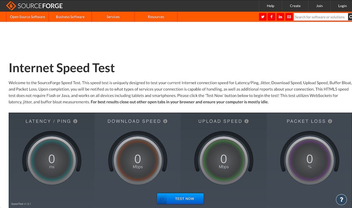 1. At precise Elum controller future location, access from your mobile / computer to the following website: https://sourceforge.net/speedtest/
