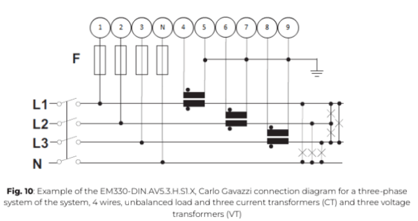 Voltage-carrying parts. Risk of heart attack, burns and other injuries. Disconnect the power supply and charge the device before installing the analyzer. Protect the terminals with covers. The energy analyser must be installed by qualified/approved personnel.