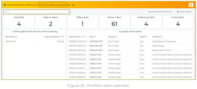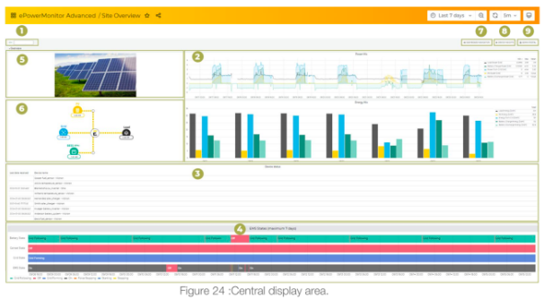 This section delves into the specific functionalities of buttons across the Site Overview page previously presented in section 3 of Part 1. It provides detailed insights into each button’s purpose and usage within ePowerMonitor, offering a comprehensive understanding of how to maximize operational efficiency and analytical capabilities.