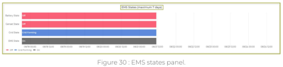 - EMS state: The current state of the Energy Management System (EMS) at the site ON/OFF.