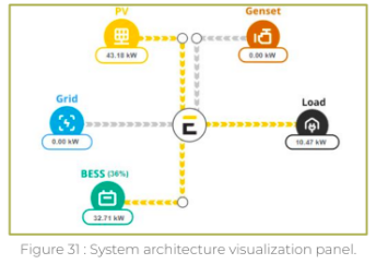 - Current State: Displays information on discharge power, charge power, and state of charge.