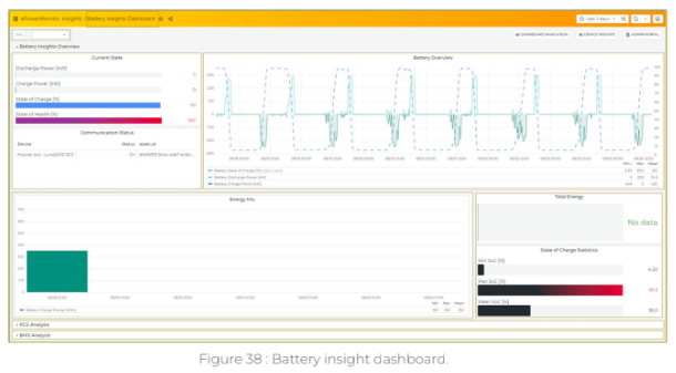 You are directed to a page dedicated to battery performance and statistics, where you can view various KPIs and monitor the batteries from the following panels: