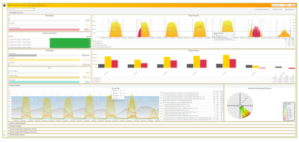 - Sensor Analysis: Presents detailed environmental data from site sensors, including irradiance, temperature, wind speed/direction, atmospheric pressure, and humidity,